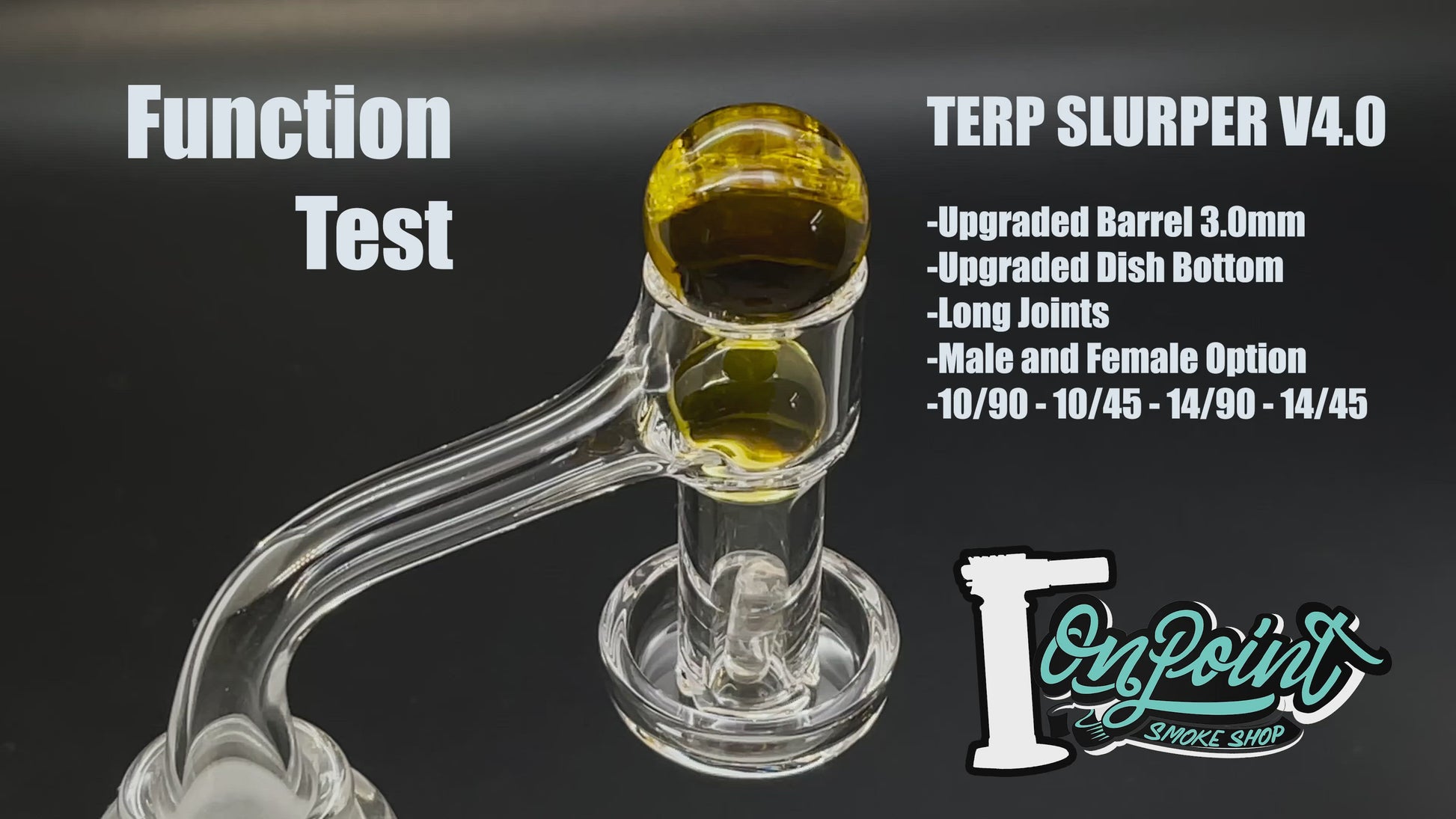 The On Point Quartz Terp Slurper Xl 4.0 is available in 10mm/90 Degree, 14mm/90 Degree, 10mm/45 Degree and 14mm/45 Degree Males